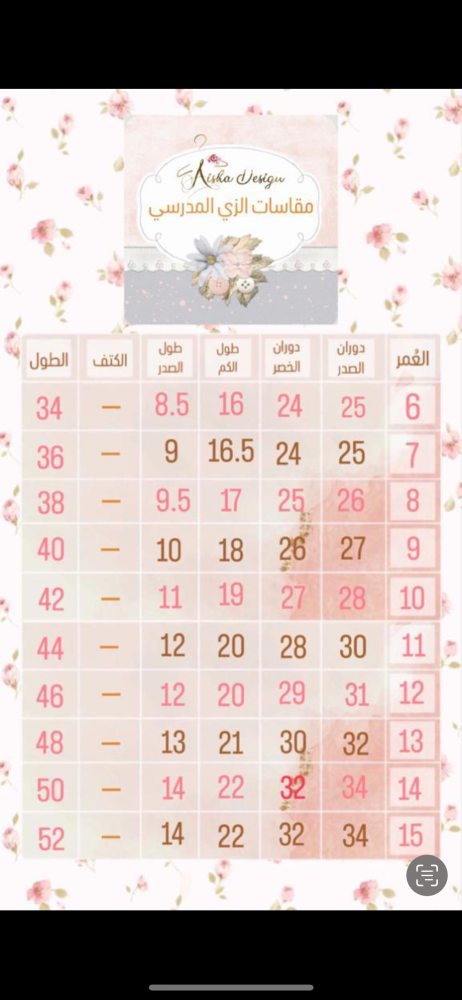 - متوفر بمقاسات مختلفة ليكون مناسب لهن في الفئات العمرية المختلفة بداية من السن الصغير 6 سنوات الى الاكبر 11 سنه.
